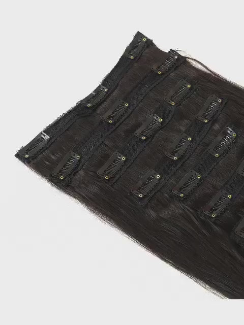 Effortlessly elevate your style with our Premium Human Hair Extensions, expertly crafted for adaptability and elegance. Each set includes 8 pieces of superior 100% human hair weighing a total of 100 grams, complemented by 20 grams of clip-ins to enhance both volume and length. With a combined weight of 120 grams, these extensions remain lightweight and comfortable for all-day wear. Their natural texture and rich hues blend flawlessly with your own hair, providing a seamless, polished look. Perfect for any occasion, these extensions are easy to apply and can be styled just like your natural locks, delivering instant sophistication and confidence.